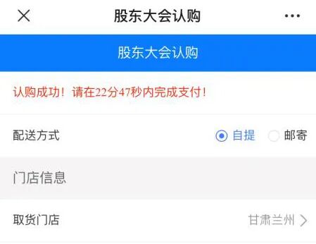股东认购成功页面截图
